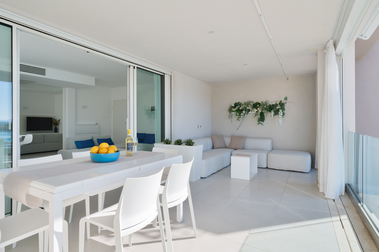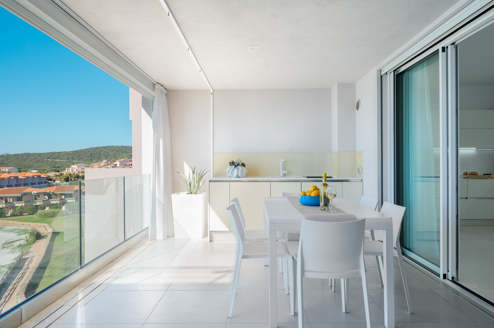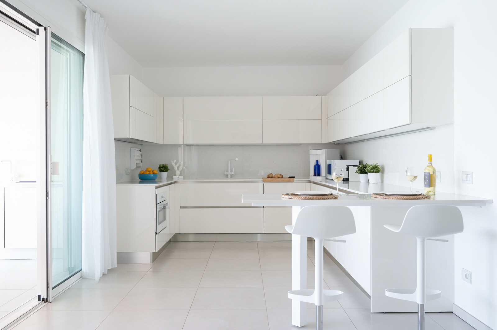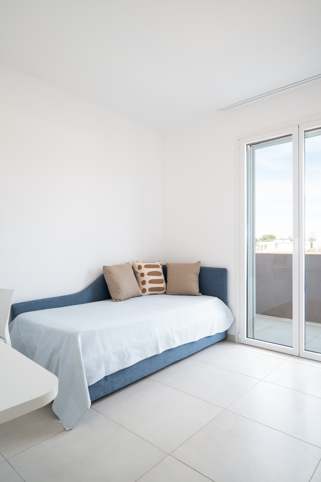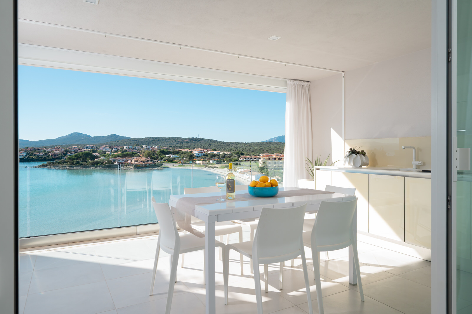 Gli spazi interni, luminosi ed essenziali, si aprono verso l’esterno, mettendo in continuità la vita quotidiana con il paesaggio costiero.
