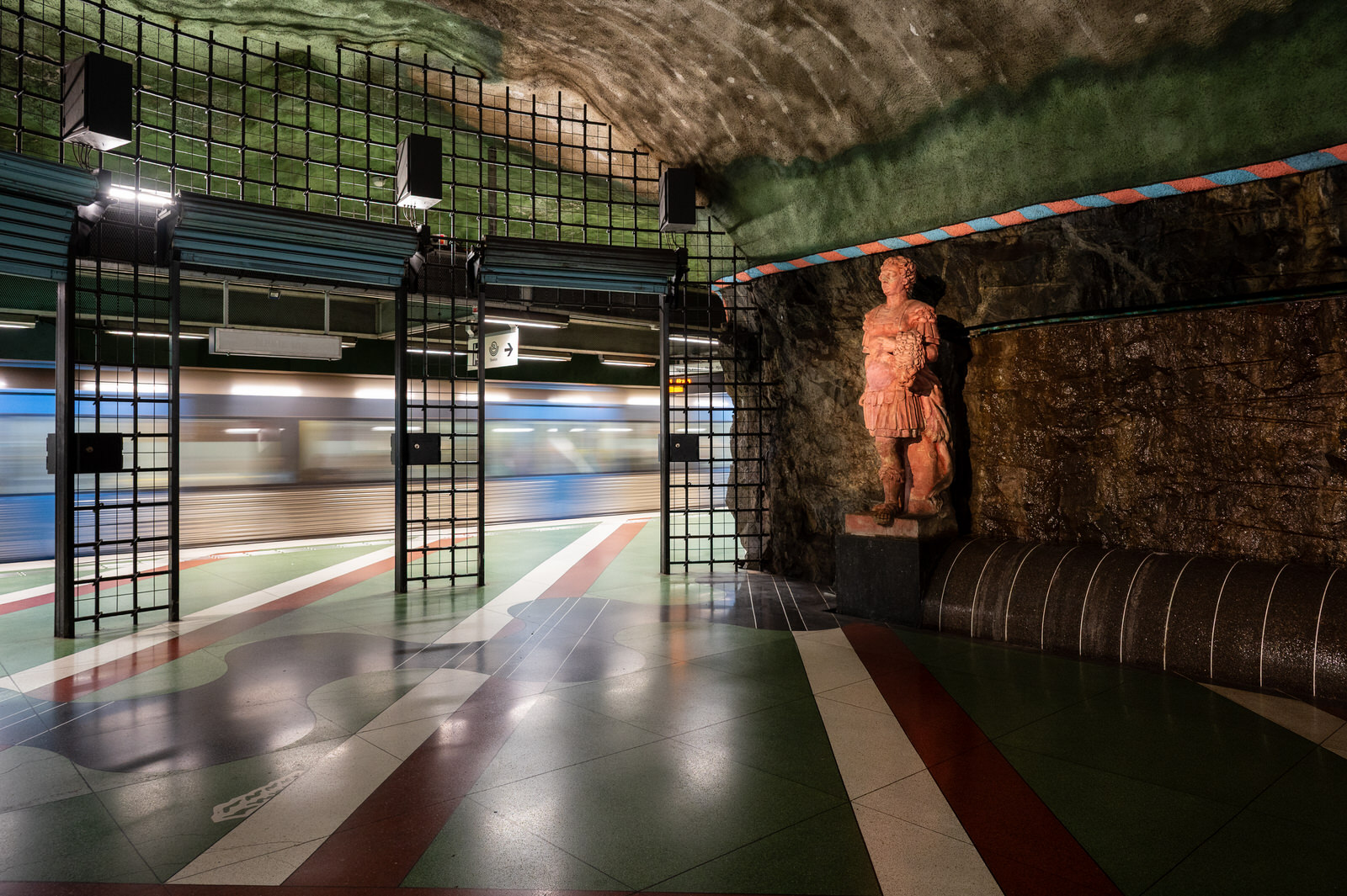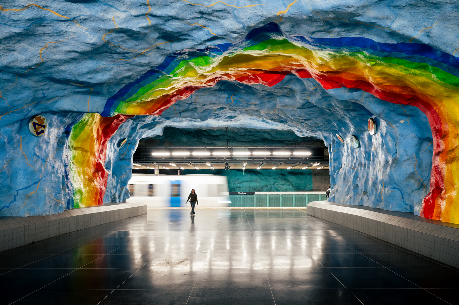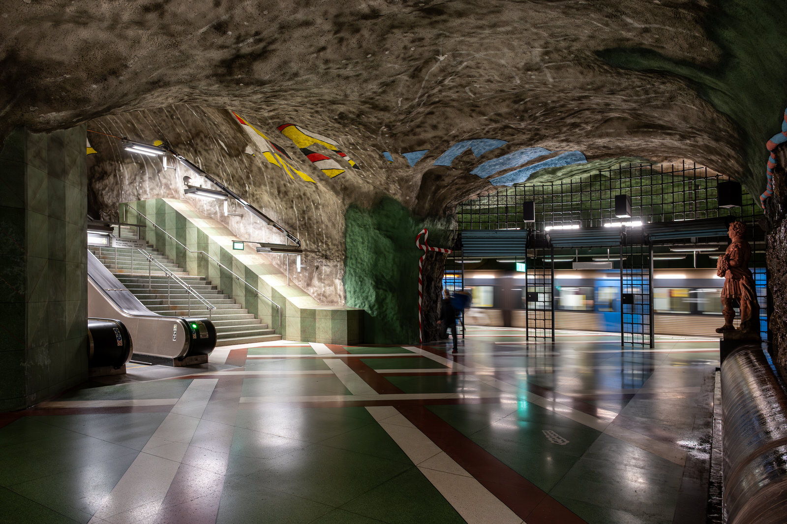 Nella metropolitana di Stoccolma, la Tunnelbana, questa dimensione si trasforma: l’infrastruttura diventa un luogo in cui arte e architettura convivono, ridefinendo la percezione dello spazio.