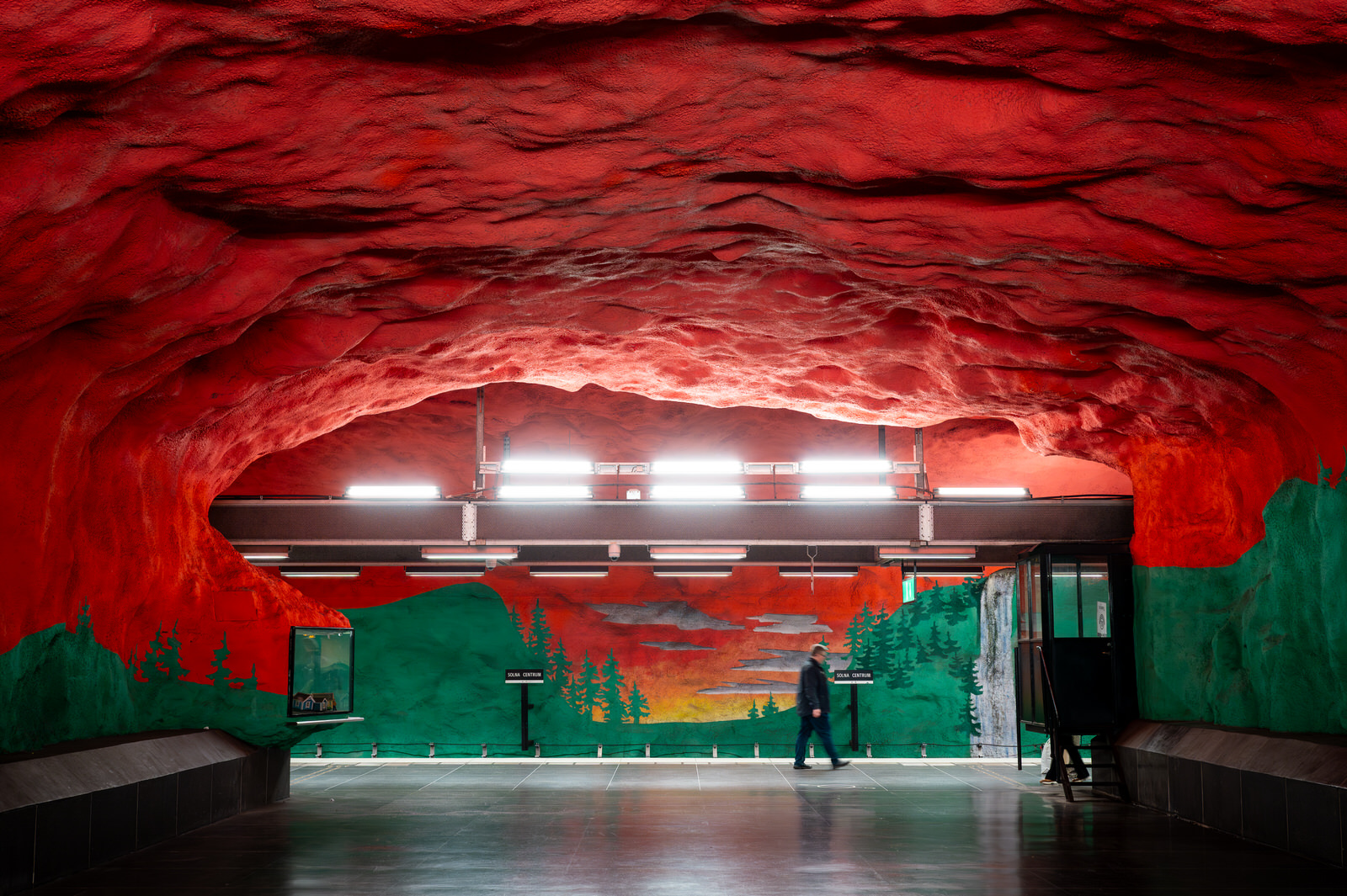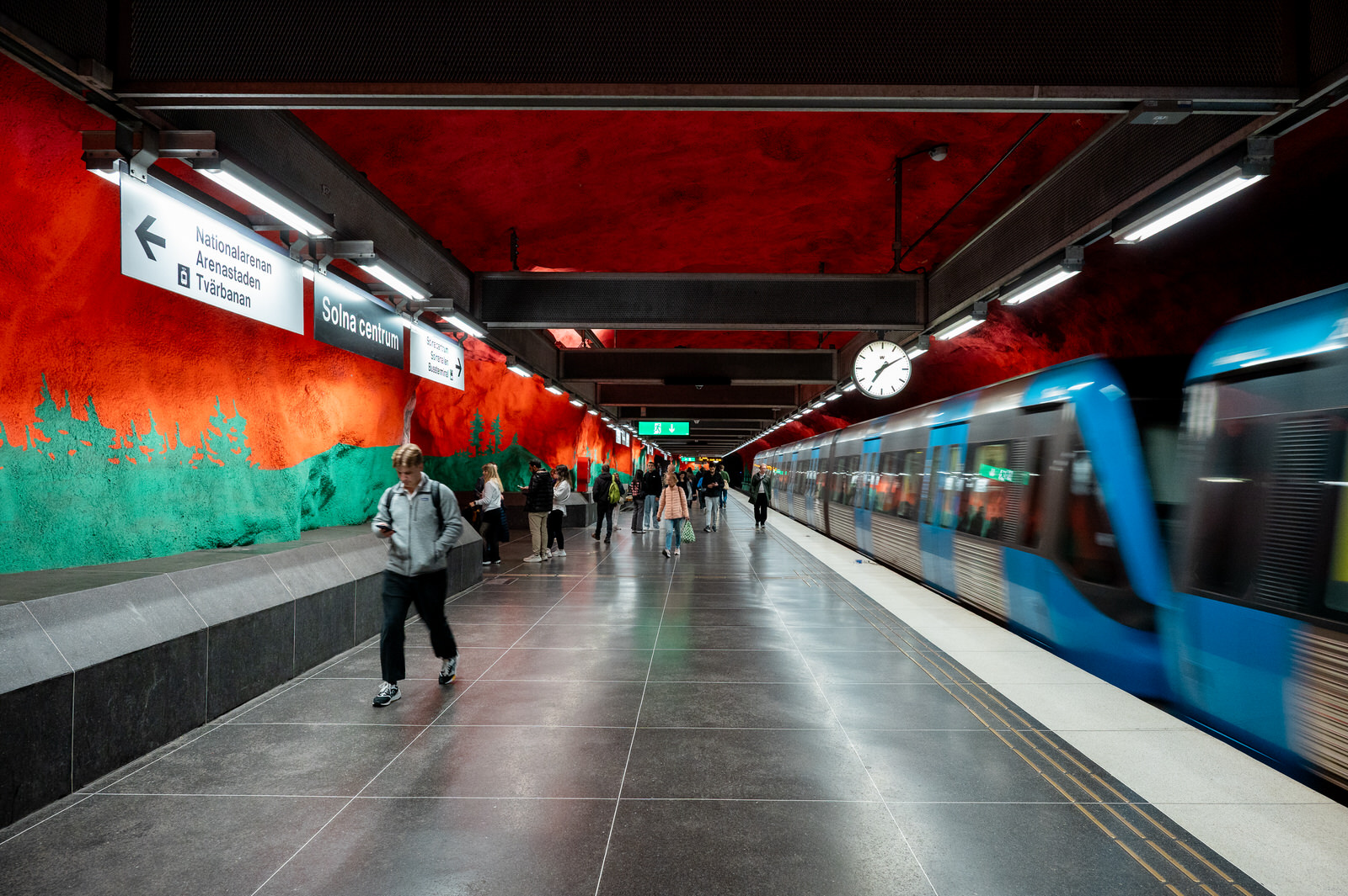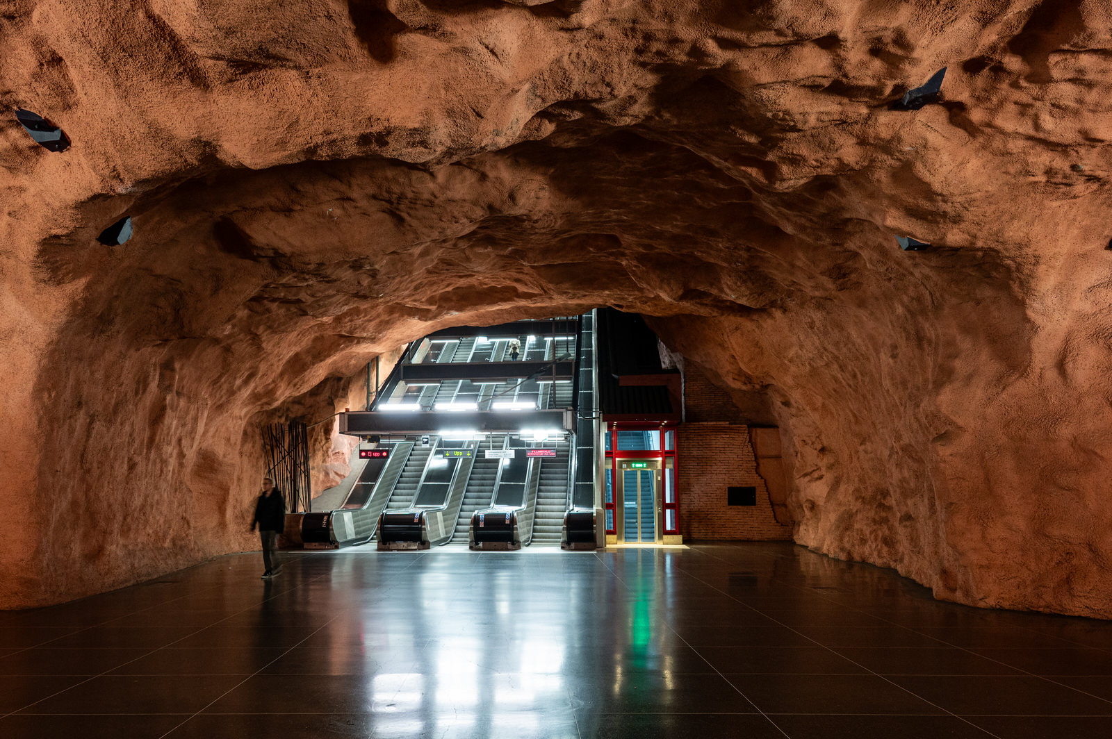 Nella metropolitana di Stoccolma, la Tunnelbana, questa dimensione si trasforma: l’infrastruttura diventa un luogo in cui arte e architettura convivono, ridefinendo la percezione dello spazio.